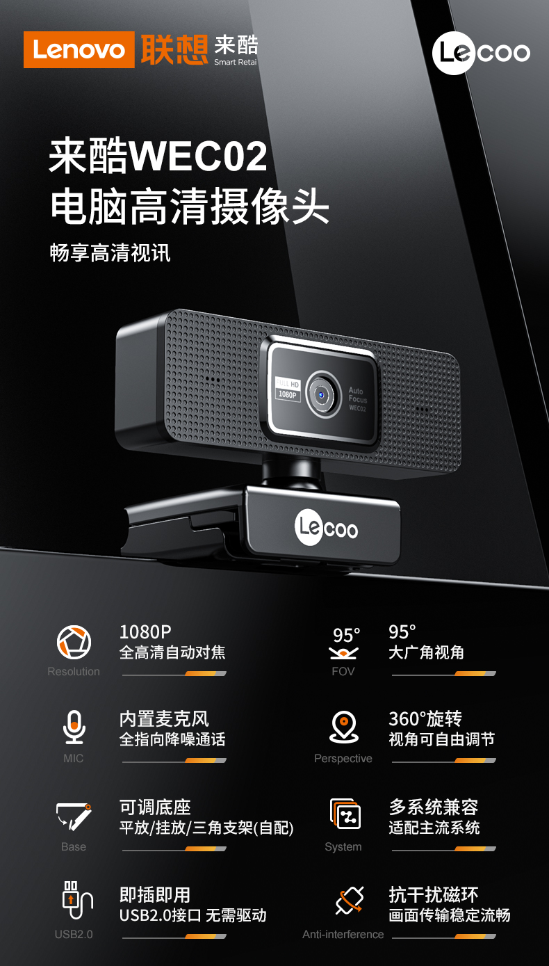 レノボLecooパソコン防犯カメラ1080 PHD内蔵マイクドライブフリービデオデスクトップノートパソコンユニバーサルネットワーク試験大広角USB外部WEC 01定焦(HD 720 P)