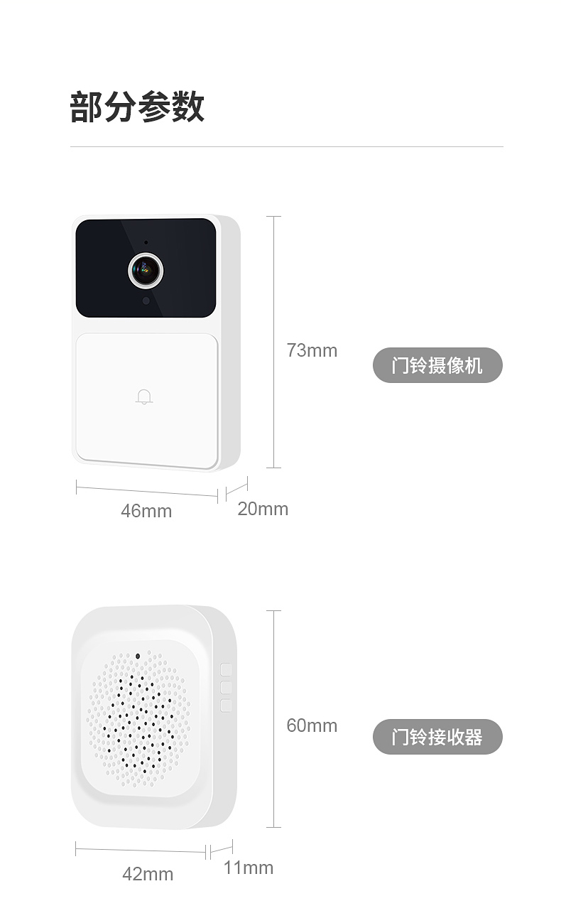 小米(MI)インテリジェントユニバーサルインテリジェント可视门铃家用ワイヤレスwifiリモートで充电HD防犯カメラ防盗门監視电子猫眼琦莎 【1个门铃+1个叮咚机】【2年云ストレージ*3天循环保存