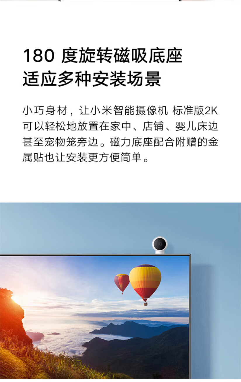 【小米-】小米(MI)インテリジェント防犯カメラ 標準版2K家用モニターwifiインテリジェント室内ビデオカメラHD1296Pスマホリモートで操控【行情 报价 价格 评测】-
